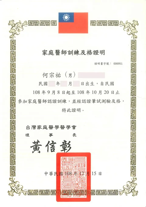 臺灣家庭醫學會認證醫師