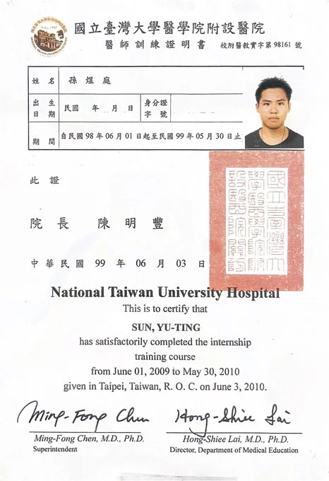 臺大醫院優良實習醫師