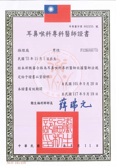 臺北馬偕醫院耳鼻喉科總醫師
