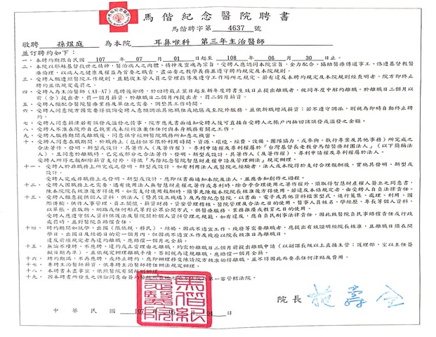 臺北馬偕醫院耳鼻喉科住院醫師
