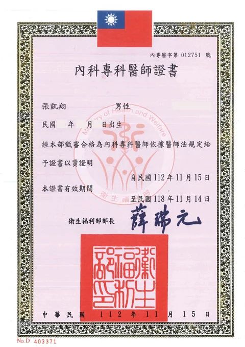 中華民國內科專科醫師