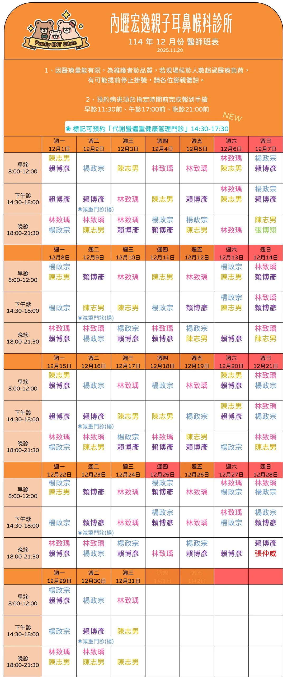 次月門診表