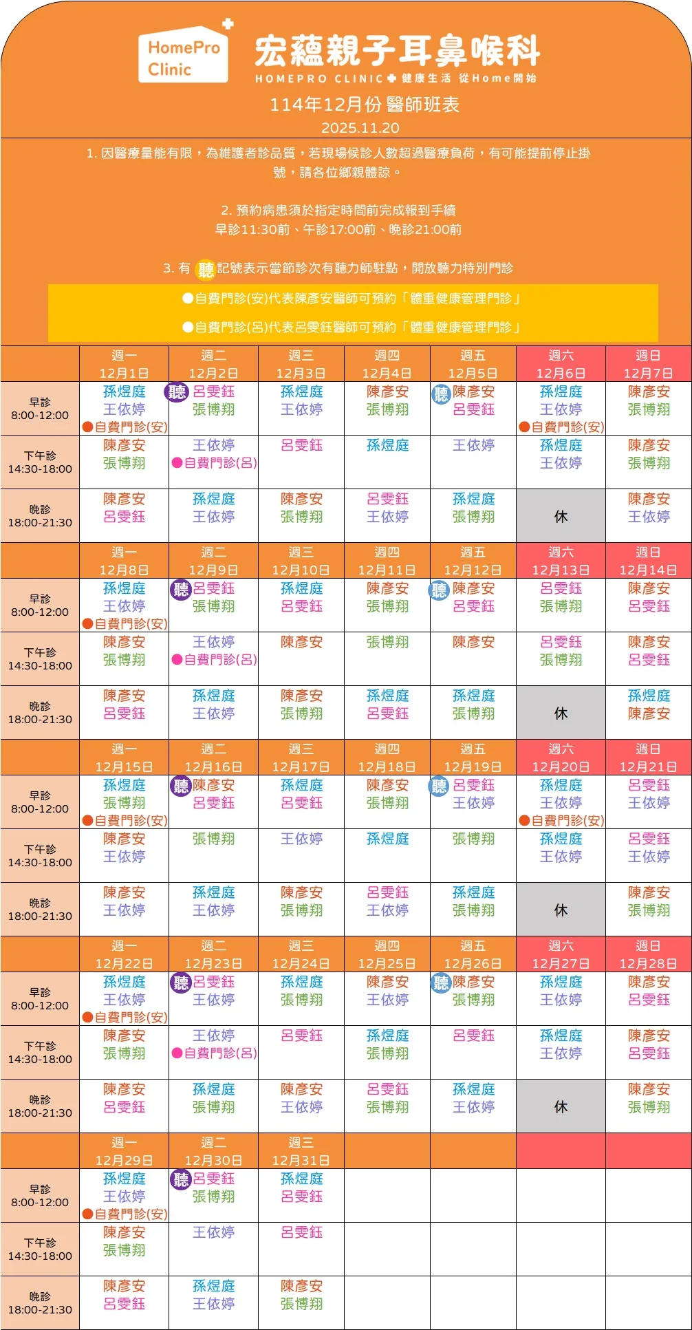 次月門診表