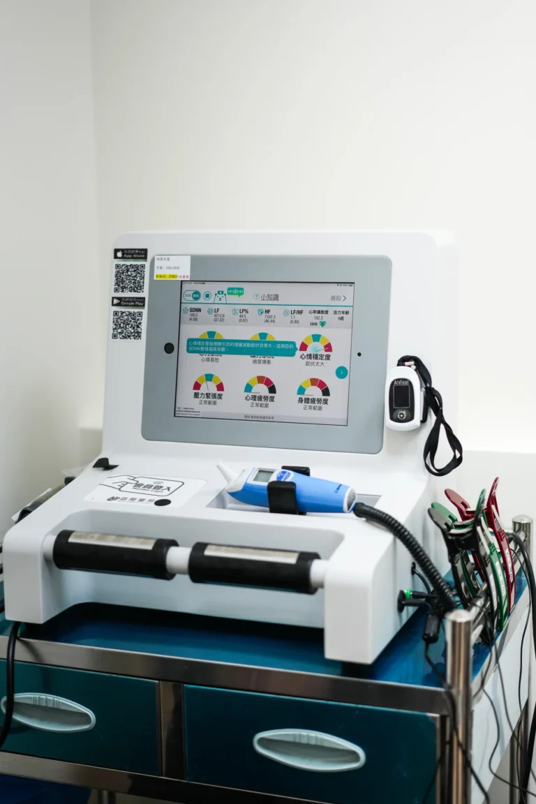 以心率變異分析(HRV)檢測交感與副交感神經的平衡狀態,協助了解壓力負荷、睡眠品質、情緒狀態與身心調節功能。