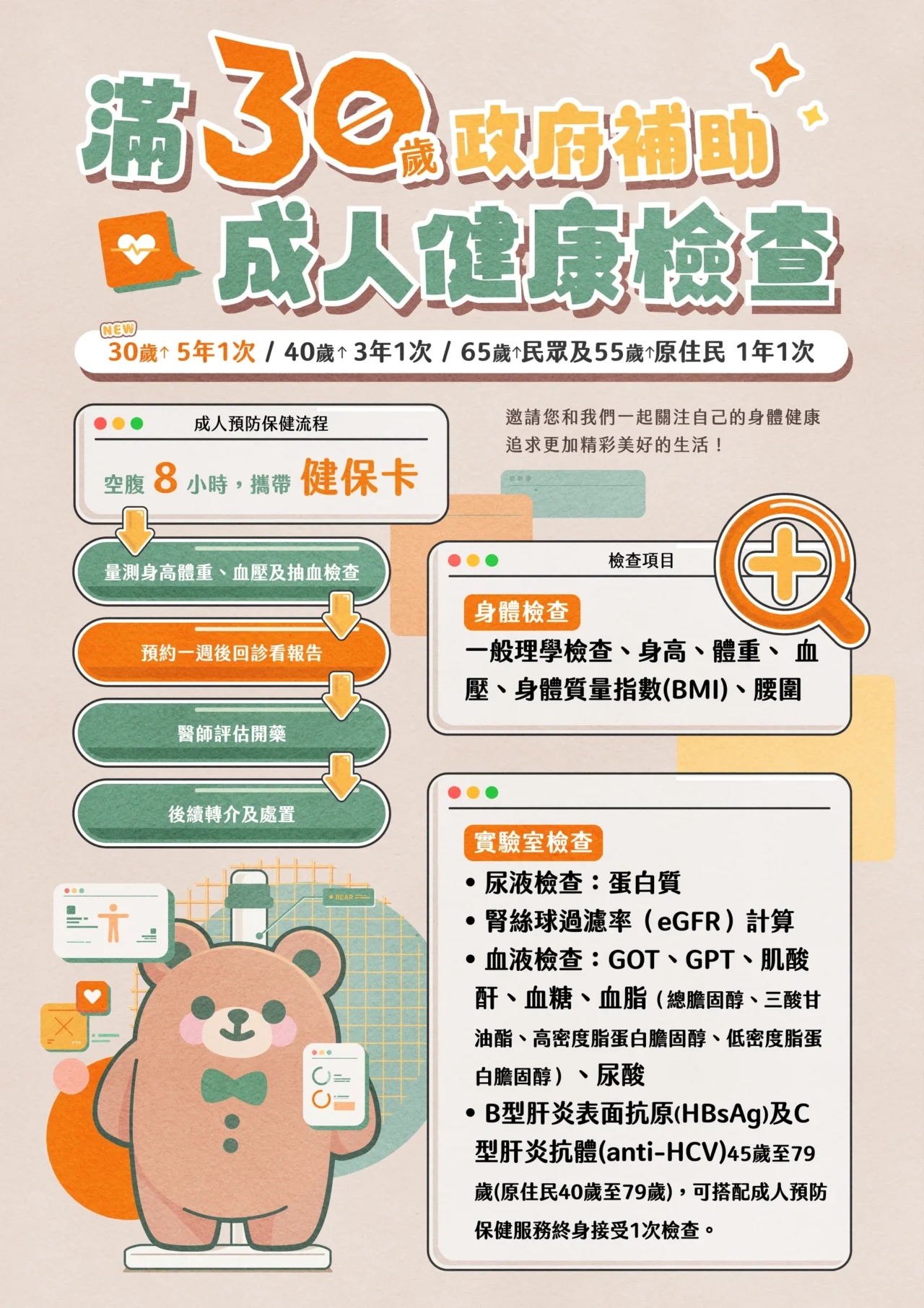 定期全身健康檢查,提早預防疾病。